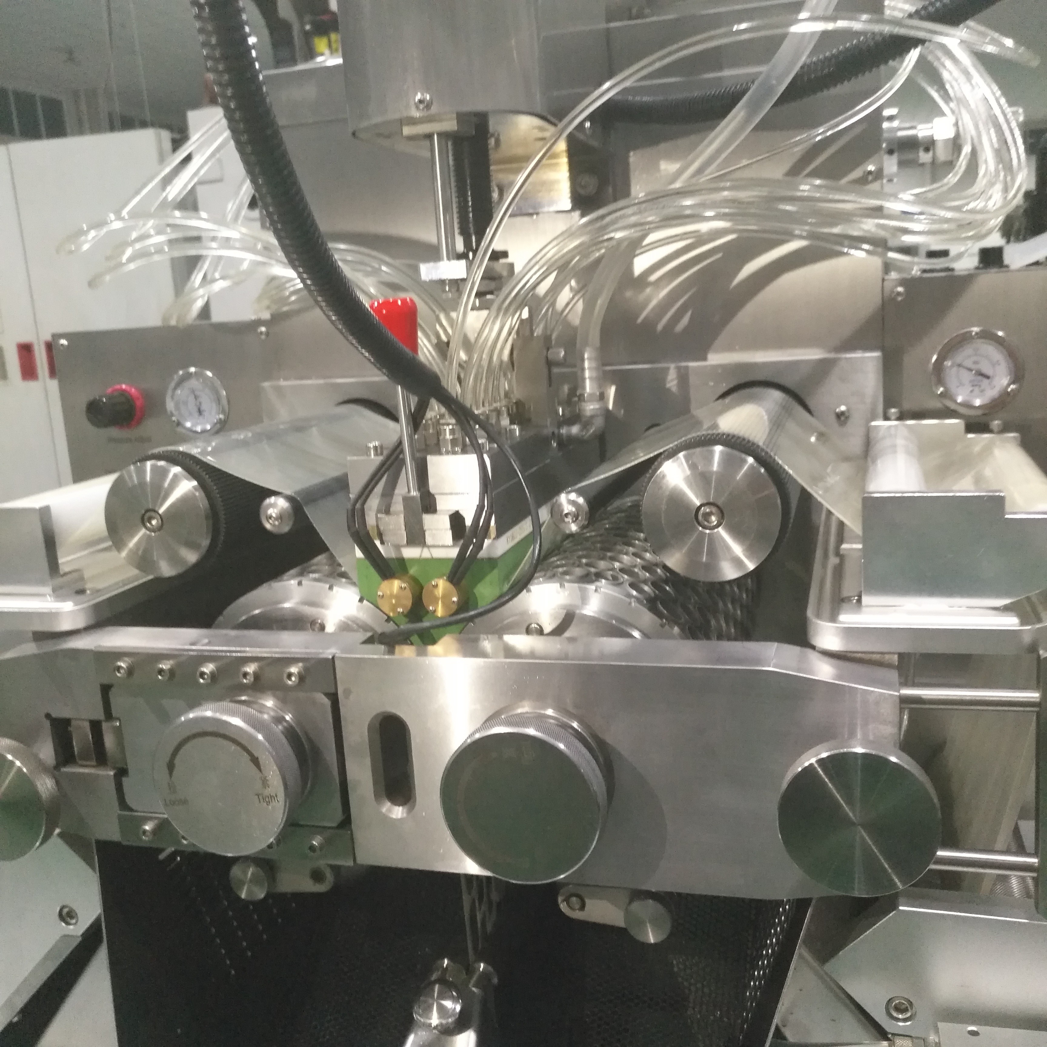 S407ソフトゲル包装機は,モデルS406ソフトゲル包装機に基づいて開発されている. ローリングの長さは20mm長くなります.外国機器の利点と顧客の要求を組み合わせますS406はPLC操作を採用し,操作をより便利にします. S407は,PLC操作を採用し,PLC操作は,PLC操作を採用し,PLC操作は,PLC操作を採用し,PLC操作は,PLC操作を採用します.ダイロールの回転速度は,0から7rpm以内に調整することができます乾燥サイクルはPLC統一によって制御されます.ユーザがサイクルの時間を快適に調節できるようにタンブラードライヤーは,操作者が放出時に十分に準備することを思い出させる装置で設計されています. S407は,統計表記と印刷の機能を実現することができます.機械駆動システムの潤滑ポンプは,モーターだけで駆動されます主要機器が非常に遅い速度で動作するときに,潤滑性能を大幅に向上させる.同時に,機械の振動を減らすことができます.機械の修理時間を延長し,ユーザーへの投資を節約する.