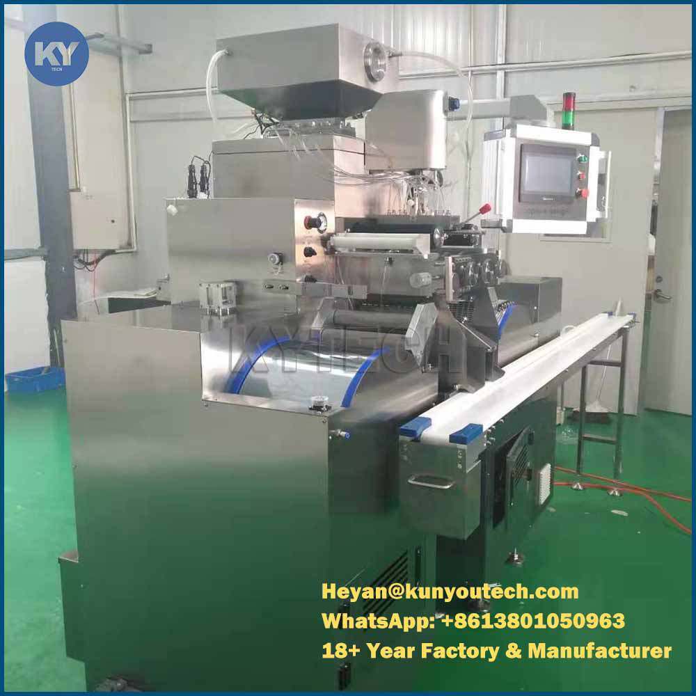 S406 ソフトゲル 封装装置は伝統的な設計に基づいて開発されました 主な機械は3つのモーターだけで動いていますダイロール速度を0から5rpmまでステップレスに調節できる注射シート,ゼラチン散布箱,ゼラチンタンクの温度は,個々の温度計の調節器で,望ましいように調節できます.この機械は,高度な自動化と高生産性の利点があります薬剤,化粧品,食品,ペイントボールなどに適しています.